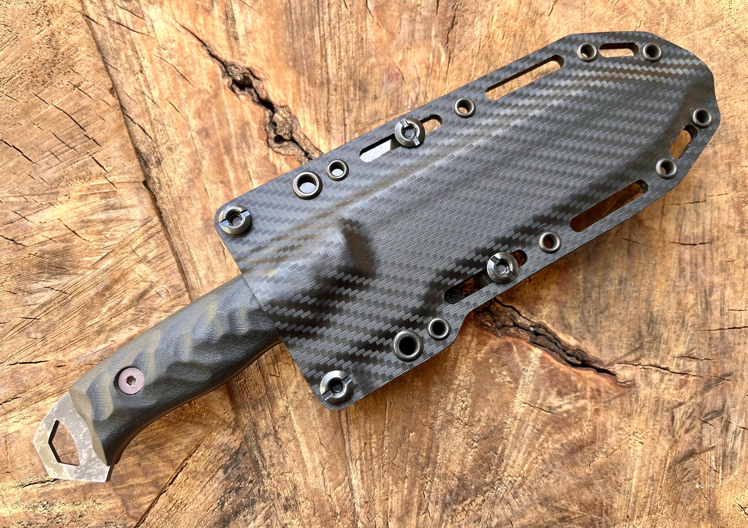 Das Wilderness kommt außerdem mit einer komplett überarbeiteten GEN 2 Kydex-Scheide aus Carbonfaser, mit verbessertem, klapperfreiem Sitz sowie Optionen für horizontales, vertikales, MOLLE- und gürtelloses Tragen.