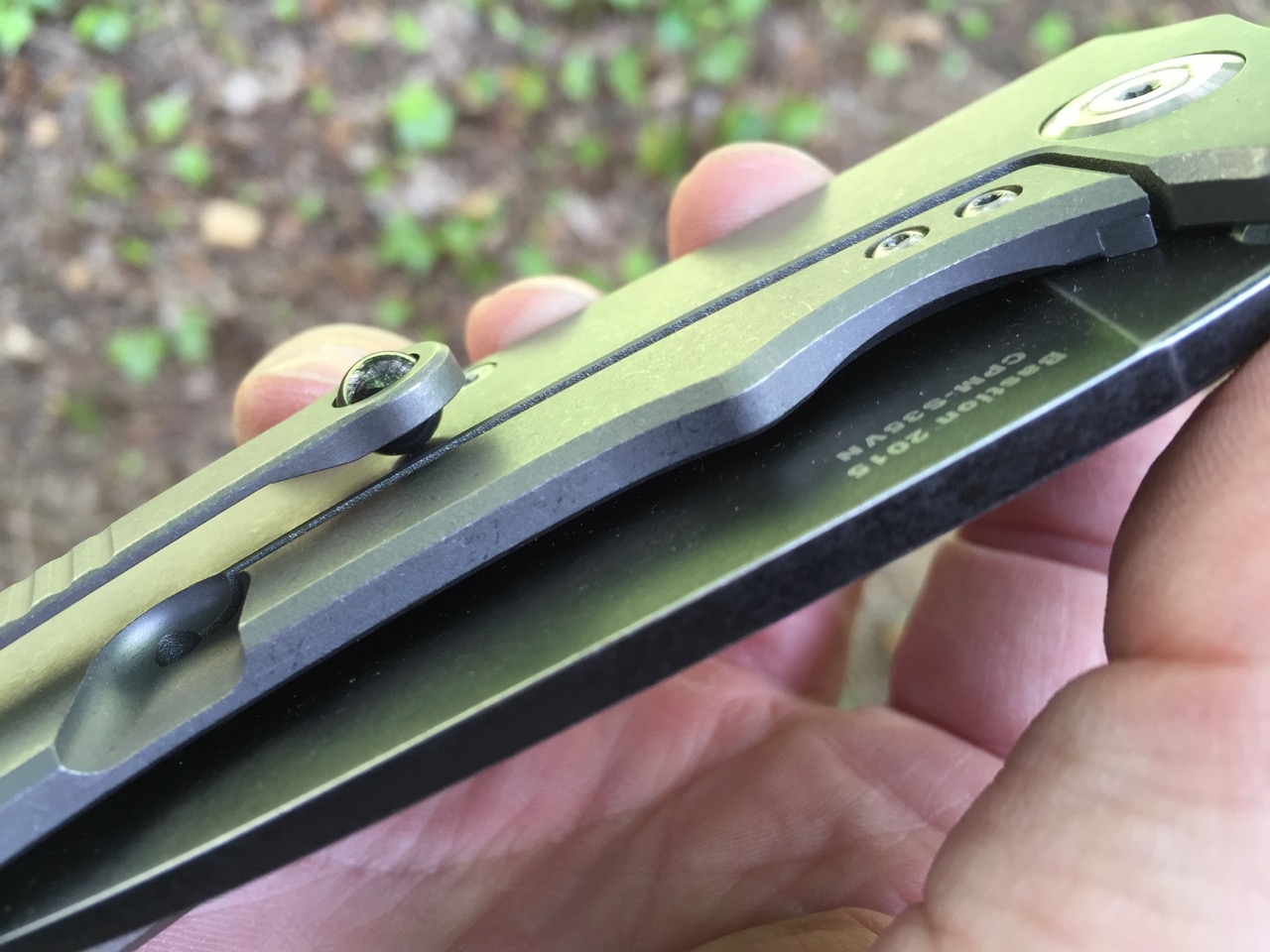 Hier wurde nicht kopiert, hier wurde eigene Innovation geboren, an welcher sich selbst die aktuellen Top Hersteller messen lassen müssen. Die Öffnung der Klinge über den Flipper ist funktioniert derart gut und leichtgängig, dass man zunächst eine federunterstützte Öffnung vermutet. Die Klingenfixierung ist extrem robust und toleranzfrei ausgelegt, so dass man fast das Gefühl eines Fixed Blade hat. Trotz seiner nicht gerade zierlichen Ausmasse lässt sich das Bastion ungewöhnlich angenehm führen. Mit dafür verantwortlich ist der kräftige Titanium Clip welcher über eine integrierte drehbare Keramikkugel verfügt, die das Ziehen des Messers aus der Hosentasche zu einer echten leichtgängigen Freude macht.