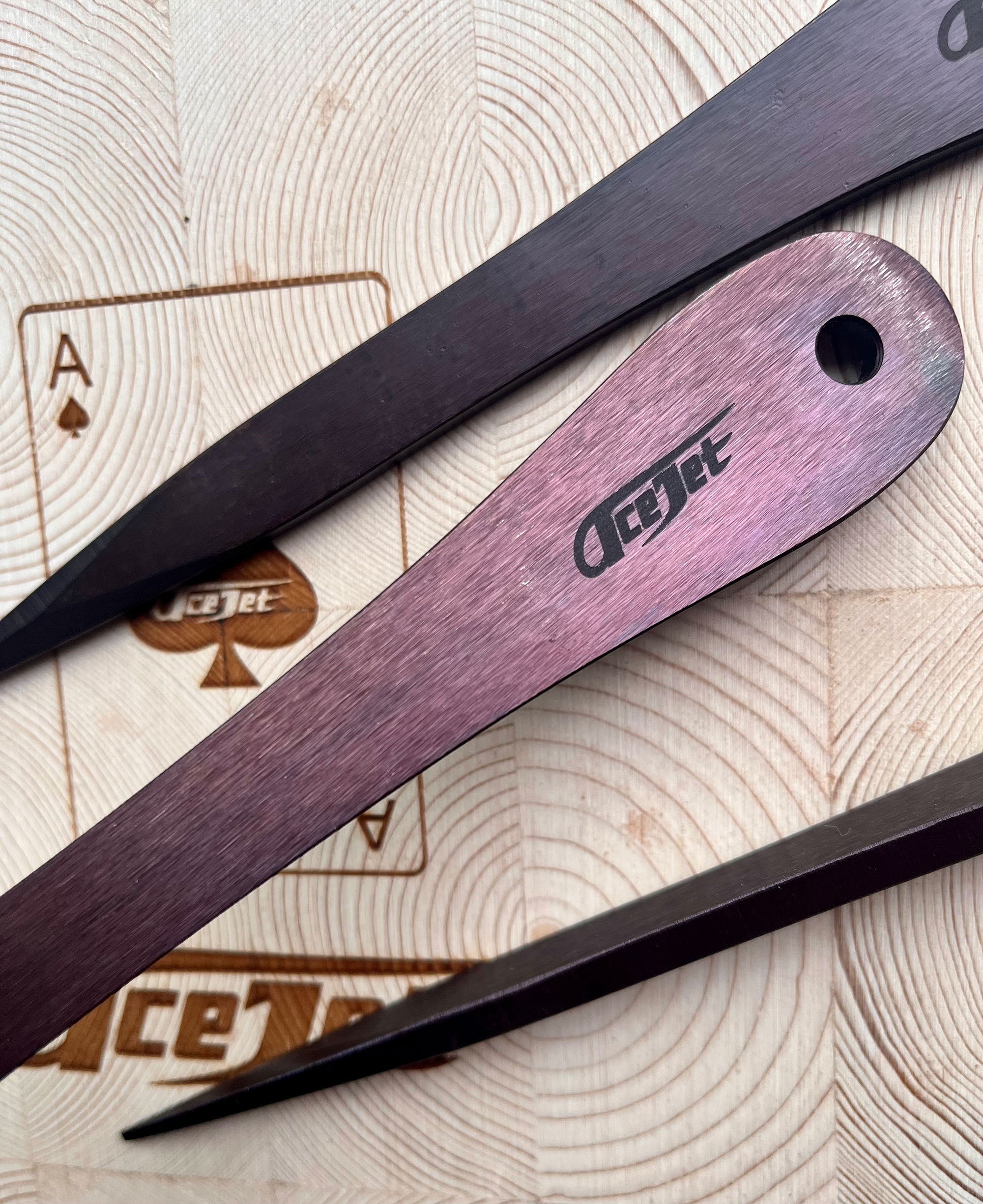 Die Stinger Air Wurfmesser sind die 6 mm-Variante des Bestsellers von AceJet und Adam Čeladíns beliebtestem Messer. Ideal für Einsteiger, die schnell Fortschritte machen wollen, und perfekt für die No-Reload-Technik, da mehrere Messer bequem in der Hand liegen.